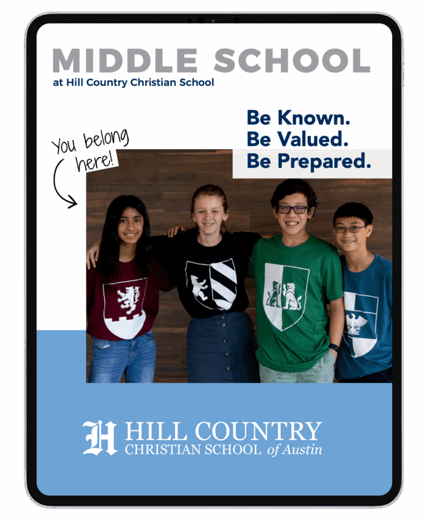 Middle school should be more than a bridge between elementary school and high school. At Hill Country, we’re intentional about how students grow their independence and take responsibility for their learning and achievement. The result? Our middle school graduates are confident, responsible individuals who are ready for high school.